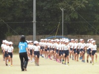 今日から、運動会の全体練習が始まりました。子ども達全員が運動場に集合し、入場行進の練習と、開会式の流れの確認をしました。入場行進では、腕を大きく振って足を高くあげながら、列を揃えて行進する練習をしました。入場行進を、運動会の一番初めの演技という意識をもって、懸命に練習に取り組む子ども達でした。