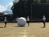 今日の全体練習では、全校競技の練習がありました。今年から新たにプログラムに入った全校競技で、紅白に分かれて大玉運びを行います。練習とはいえ、子ども達は皆で息を合わせて大玉を運び、白熱した戦いが繰り広げられました。
