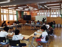 今日は5時間目に、特別支援学級に在籍する子ども達との交流学習会がありました。はじめに自己紹介をした後、特別支援学級についての説明がありました。説明の中では、人には「運動」、「言葉」、「心」の3つの窓があり、一人一人その開き方に違いがあることや、特別支援学級では子ども達の窓の開くペースに合わせて学習をしていることなどの話がありました。会の最後には「貨物列車」をして遊び、皆と楽しく活動することができた子ども達でした。