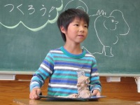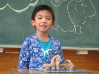 今日は、2年生が図工の時間に「ひみつのグアナコ」という題材で製作をしていました。子ども達は「グアナコ」という言葉から自由に発想し、思い思いのグアナコを粘土でつくっていました。作品を発表する場面では、自分が想像したグアナコについて生き生きと話す中に、子ども達の豊かな感性が光っていました。