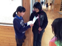 今日は6年生が、先生方への感謝の気持ちを書いた手紙を読み、手作りのクッキーと一緒に手渡していました。手紙には、部活動や委員会活動など様々な場面で先生方にお世話になったことへの感謝や、中学校での抱負などが書かれていました。手紙を受け取った先生方も、とても喜ばれていました。先生方に、これまでお世話になったことへの感謝の気持ちを、しっかりと伝えることができていた6年生でした。クッキーもとてもおいしかったです。