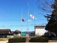 東日本大震災から4年にあたる今日は、震災で亡くなった方々と、そのご遺族に対し、哀悼の意を表すために半旗が掲げられました。また、地震発生時刻の14時46分に合わせて、5時間目終了後の14時55分に、全校児童で黙祷を行いました。亡くなられた方々に思いを馳せ、被災地に1日でも早く安らかな日々が戻ることを願う子ども達でした。