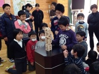 今日は、特別支援学級に在籍する子ども達が、6年生とのお別れ会をしていました。はじめに、6年生から一言メッセージの発表があり、在校生からもお祝いのメッセージが渡されました。その後、貨物列車やジェンガなどのゲームをして楽しい時間を過ごしていた子ども達でした。6年生との楽しい思い出をつくることができたようです。