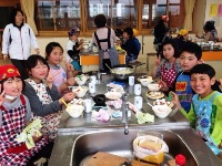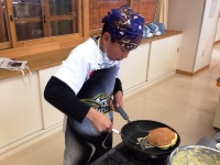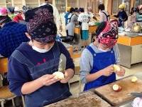 今日は、5時間目に5年生が調理実習で、ホットケーキとフルーツヨーグルトを作っていました。子ども達は包丁を上手に使ってリンゴの皮をむいたり、火加減をよく見てホットケーキを焼いたりすることができていました。ホットケーキにはホイップクリームやチョコレートをかけて飾り付けをし、美味しそうに食べていました。