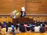 今日は朝の活動の時間に、1年生教室で6年生が読み聞かせを行っていました。6年生が1年生の聞きとる早さに合わせてゆっくりと読んでくれていたおかげで、1年生の子ども達は物語の世界にじっくりと入り込むことができていました。6年生の子ども達の、1年生に対する優しい気遣いが見受けられました。