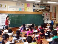 今日は、3つのクラスで算数の研究授業がありました。1年2組では、今村先生による「ひき算」の授業で、くり下がりのあるひき算の計算の仕方を数図ブロックを操作しながら考えていました。4年1組では、吉田慎也先生による「がい数」の授業で、机をコの字型にして意見を発表しあい、考えを深めていました。6年2組では、五島先生による「比例と反比例」の授業で、式や表、グラフを関連づけながら説明し、2つの量が比例の関係であるかどうかを読み取っていました。