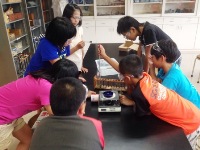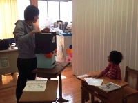 今日は、ひまわり学級の様子をお知らせします。ひまわり学級では、2つの漢字を組み合わせて別の漢字を作る学習が行われていました。手づくりのロボットを扱いながら1対1で丁寧に学習が進み、学級の児童は漢字の組み立てをきちんと理解することができていました。