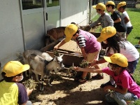 今日は1年生が生活科の学習で、南稜高校へ行って動物とのふれあい体験学習を行いました。施設や動物については高校生の人たちから丁寧な説明があり、詳しく知ることができました。子どもたちは、ふれあいの中で生き物に関心を持ち、命を大切にしようとする気持ちを持つことができていました。
