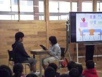 今日は、児童集会で放送委員会の発表がありました。はじめに、今週のお昼の放送の中で出されたキーワードクイズの答え合わせがありました。「氷」や「魔法」などのキーワードから、「アナと雪の女王」が答えでした。子どもたちは毎日キーワードの放送をしっかり聞いていたため、ほとんどの子が答えが分かっていたようでした。放送委員会は毎日楽しい放送を送ってくれているため、今後もしっかりと放送を聞くようにしてほしいです。