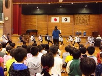 今日は、児童集会で器楽部の発表があり、明日の器楽合奏コンクールで演奏する曲を披露してくれました。アコーディオンの四重奏で、体全体でリズムをとりながらの迫力ある演奏でした。明日のコンクールでも、これまでの練習の成果を発揮して、頑張ってほしいです。