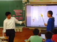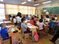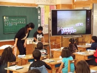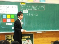また、5時間目には3年1組で山下先生による研究授業がありました。算数の「何倍でしょう」という学習で、子どもたちはかけ算の変量の関係に目を向け、意欲的に問題に取り組んでいました。