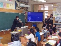 今日は、2年1組で大園先生による算数の研究授業がありました。「かけ算」の単元で、かけ算とたし算、ひき算の複合問題の解き方について、子ども達は図をかきながら真剣に考えていました。授業の中では様々な場面で情報機器が活躍し、子ども達は興味・関心をもって学習に取り組んでいました。