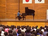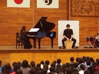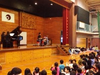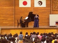 今日は、ムジカグループの方々をお呼びして、5・6時間目に芸術観賞会が行われました。ピアノの独奏や連弾、ソプラノ独唱など様々な形態で、高い技術の演奏を生で聴くことができました。後半では、ドラムセットやカホンなどのパーカッションも交えての演奏もありました。また、最後の曲には子どもたちも鍵盤ハーモニカや手拍子で参加し、楽しく盛り上がりました。