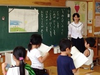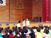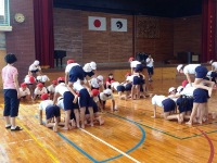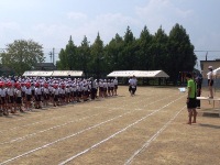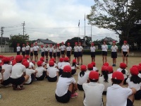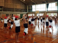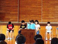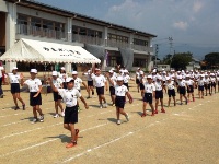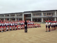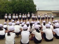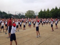 まず、他の学校のみなさんと一緒にラジオ体操をした後、学校紹介をしました。
