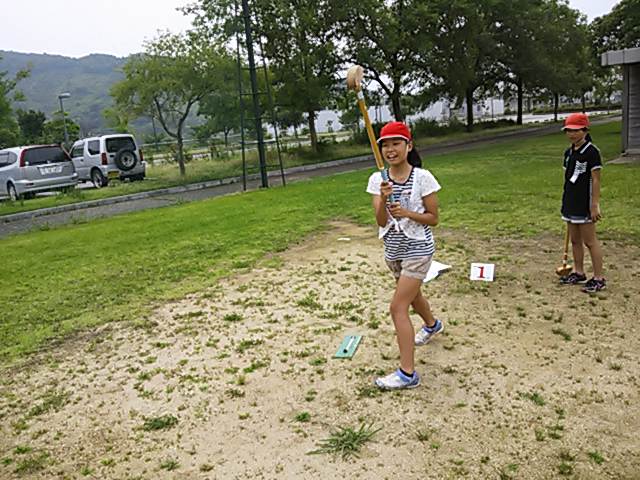 最初の活動は、A班とB班に別れて『フライングディスクゴルフ』と『グラウンドゴルフ』を行っています。