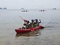 今から、午後の活動の『カヌー体験』と『海水浴』です。