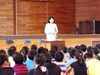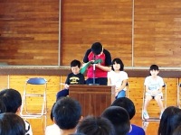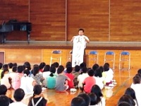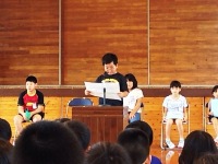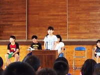 講話では、「夢を叶えるためには努力し続けることが大事であり、夢を叶えるチャンスは努力している人にだけつかむことができる」といった話や、「地域の友だちを大切にするとともに、夢を叶えて本当の友だちや仲間を見つけてほしい」といった話がありました。