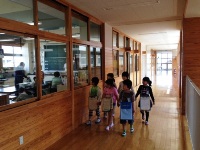 2年生は今日まで、1つ1つの場所を説明する言葉を考えたり、どうすれば1年生が喜んでくれるかを考えたりして準備をしてきました。今日は、お兄さん・お姉さんとしての自覚をもって、1年生の手をとりながら丁寧に説明をしたり、スタンプを押すお世話をしたりしていました。1年生も、2年生の説明をしっかりと聞き、学校の中を興味をもって見て回ることができていました。