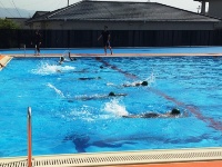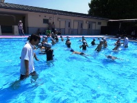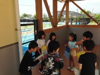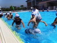 また、今日は保護者や地域の方に子どもたちの学習の様子を見に来ていただく「行こうデー」でした。ほとんどの学年は、プール開きを兼ねて行いました。暑い毎日が続く中、子どもたちはこの日を心待ちにしていました。新しくできた綺麗なプールに入ると、冷たい水の中で気もちよさそうに泳ぐ子どもたちでした。