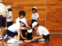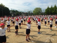今日の朝の活動の時間は「体力アップタイム」で、ラジオ体操に取り組みました。かかとをきちんと上げる、腕をしっかりとのばすなどのポイントを意識して、正しく大きな動きで体操をすることができた子どもたちでした。