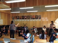 今日から、前期部活動が始まりました。今日は、入りたいと思っている部活動の体験ができる、体験入部となっています。器楽部では、子どもたちが実際にアコーディオンを持ち、音を鳴らす体験をしていました。初めてアコーディオンを演奏する子も、上手に音を鳴らすことができていました。ソフトボール部は、柔らかいボールを使って簡単なゲームをしていました。、ソフトボールの大まかな動きを体験できたことと思います。