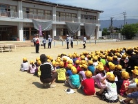 2時間目の休み時間には、全学年の子どもたちが集まって、多良木警察署の方からの話を聞きました。自分の大切な命を守るために、「交通ルールを守る」、「安全確認をする」、「危険を予測する」の3つのポイントを常に意識してほしいですとのお話でした。