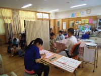 今日は、眼科検診がありました。眼科の医師の先生に目の状態を診ていただきました。きちんと整列して順番待ちをし、「おねがいします」や「ありがとうございました」といった言葉もきちんと言うことができていました。