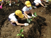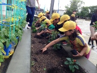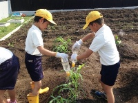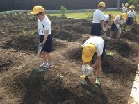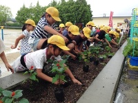 また、今日の6時間目には、2年生が畑に野菜の苗植えをしていました。ポットから苗を優しく取り出し、丁寧に植えることができていました。2年生が育てる野菜は、ナスやキュウリ、レタス、オクラなどがあります。これから毎日お世話をし、大切に育てていってほしいです。頑張れ!多良木っ子2年生!!