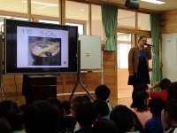 はじめに、特別支援学級の児童が自己紹介をしました。自分の好きなものをクイズにして出す子もおり、3年生は興味をもって話を聞いていました。