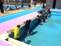 また、今日は5・6年生がプール掃除をしました。今年新しくつくられたプールを、子どもたちはデッキブラシやたわしで隅々まで磨いていました。その頑張りのおかげで、プールはとてもきれいになりました。気持ちよく水泳の学習が始められそうです。頑張ったね!多良木っ子5・6年生!!