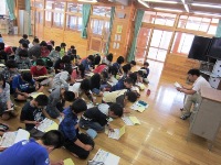 今日は保護者や多良木高校の生徒に来校してもらい、朝の活動の時間に読み聞かせがありました。毎月一回のこの読み聞かせの時間を、子どもたちはいつも楽しみにしています。今日もそれぞれの学級で、工夫のこらされた読み聞かせが行われていました。本の世界に入り込み、食い入るように話を聞いていた子どもたちでした。
