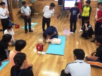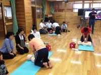 その後、胸骨圧迫と人工呼吸、AEDの使い方を、人形を使って実際に行いながら確認しました。