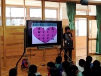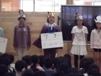 今日は、児童集会で図書委員会の発表がありました。今年度結成された図書レンジャーが登場し、図書室での過ごし方や、本を大切にすることなどを呼びかけました。児童の感想発表では、「なるべく図書室に行って、本をたくさん読みたいです。」などがありました。