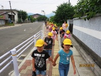 5時間目に、生活科の学習で1年生が学校の周辺を歩いて探検しました。先日の交通安全教室で学習した、道路の通行の仕方や横断の仕方などのきまりをきちんと守りながら、安全に探検することができていました。また、地域の方々へもさわやかな挨拶ができていました。
