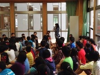 その後、那須先生から「3つのまど」についての話がありました。人にはみな、「心」、「運動」、「言葉」の3つの「まど」があり、人それぞれ「まど」が開くペースが異なることを認め合う大切さについての話でした。