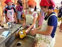 今日は、5年生が調理実習で、ゆで卵と青菜のおひたしを作っていました。今日の食材はどちらも、加熱する時間によって出来が変化します。そのため、子どもたちは教科書にある作り方をよく見ながら、火の強さや加熱する時間などをよく考え、話し合いながら調節していました。作った料理は、給食と一緒に食べました。どの班も、思い通りの出来栄えだったようで、美味しそうに食べる子どもたちでした。よくできました!多良木っ子!!