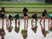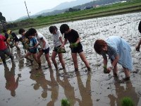 今日は、5年生が総合的な学習の時間に、久米小、黒肥地小と合同で田植えを行いました。はじめに苗の植え方の説明を聞いた後、田んぼに入って丁寧に苗を植えていきました。子どもたちは泥だらけになりながら田植えを行い、その労力の大きさを体験することができました。田植えの後には、JAの方からいただいたおにぎりと唐揚げを食べました。今日の体験を通して、普段食べているお米と、それを作ってくださっている方々に感謝する気持ちをもつことができた子どもたちでした。