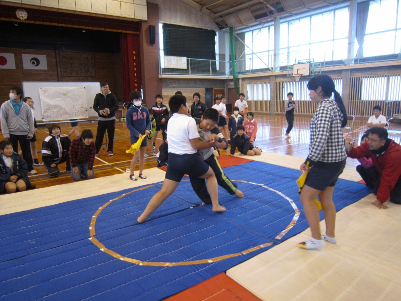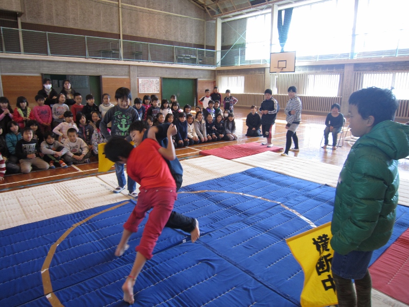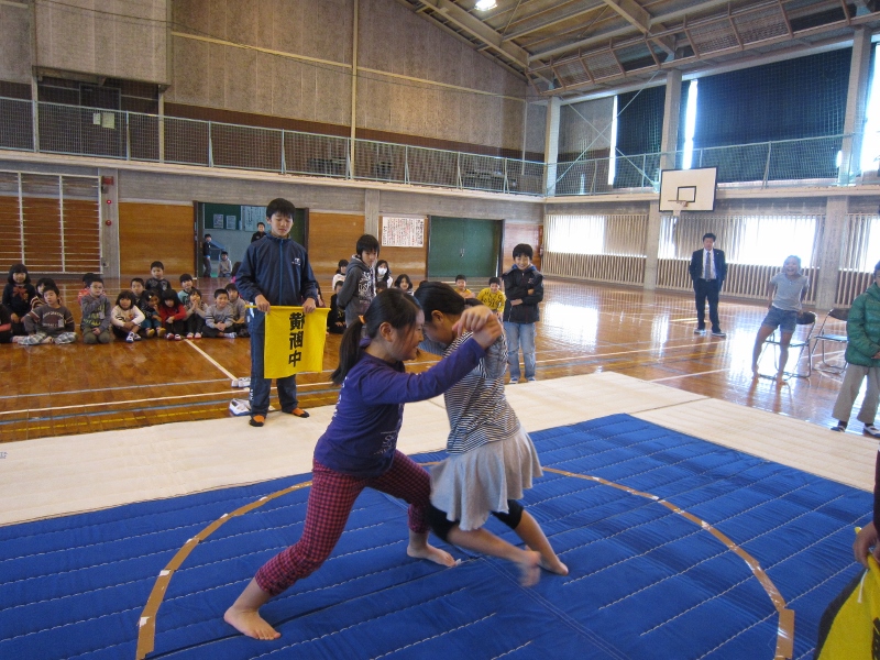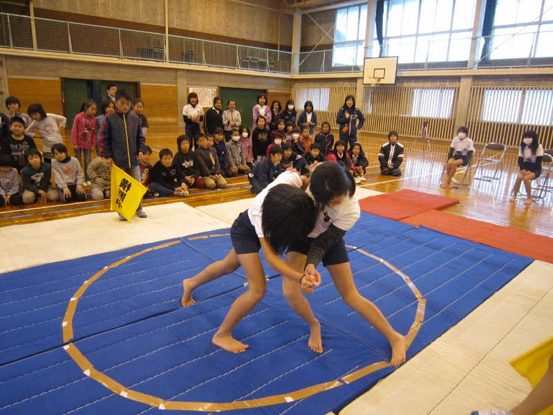 今日は、昼休みに体育委員会主催の「相撲大会(3,4年の部)」がありました。体育館でマットで作った土俵に3,4年生が上がり、熱戦を繰り広げました。女子の部は、4年生のチームに軍配が上がり、男子の部は途中まで行い、残りの取組は、木曜日に持ち越しとなりました。さて、優勝するのはどのチームでしょう。