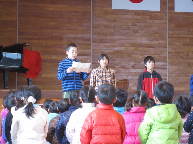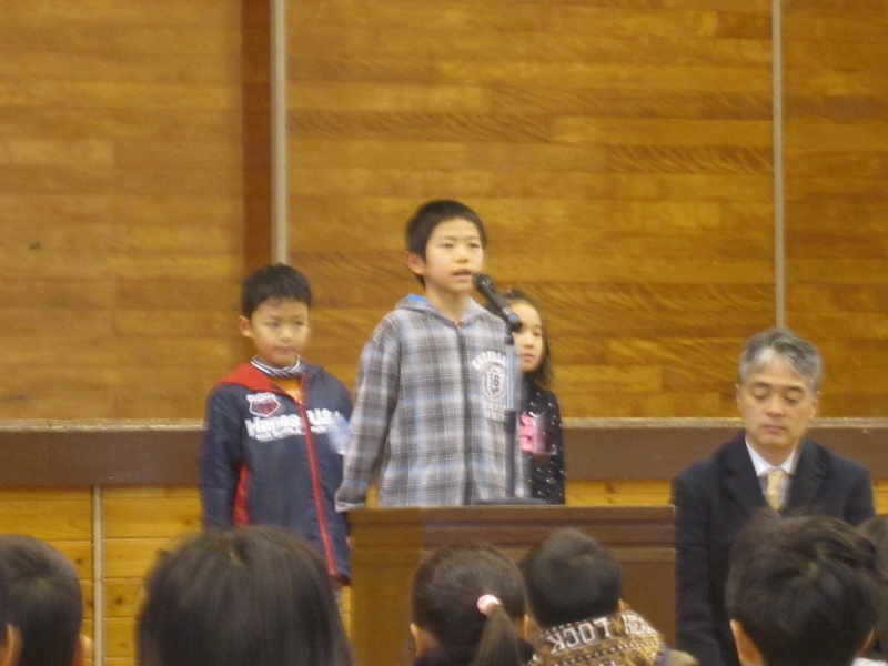 終業式では、4人の児童が2学期頑張ったことや冬休みと3学期の抱負を語ってくれました。充実した冬休みを過ごしてくれればと思います。