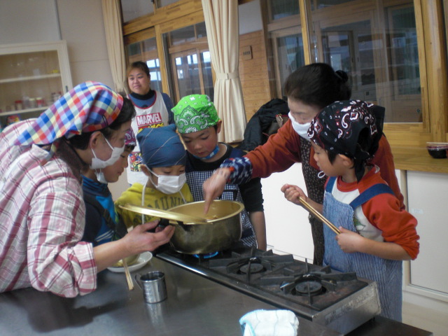 今日は、収穫した大根と買い物したおでん種を使って「おでん」を作りました。包丁を使うのに慣れていない子どもたちもお家の方々の手助けを受けながら、恐る恐る具材を切っていました。それぞれの家庭の味をうまくミックスしてとてもおいしくできました。笑顔いっぱいの楽しいおでん作りになりました。