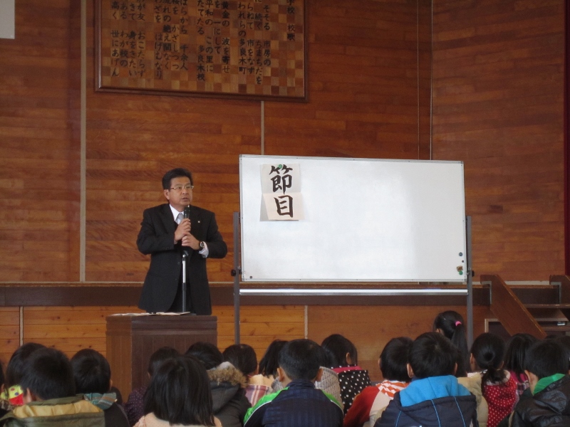 今日は、3学期の始業式がありました。まず、最初に転入生の紹介がありました。2年生に多良木っ子が一人増えました。みんなと早く仲良くなって友だちをたくさん作ってくれればと思います。意見発表では、1年生、3年生、5年生がそれぞれ3学期の抱負を力強く語ってくれました。校長先生からは、「干支」について分かりやすく教えていただきました。