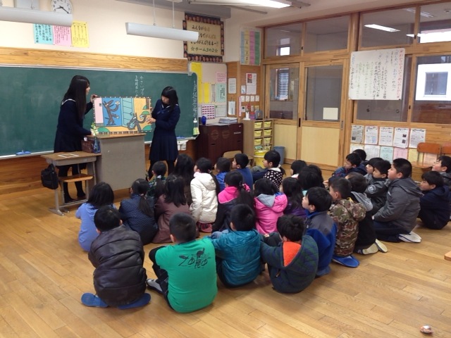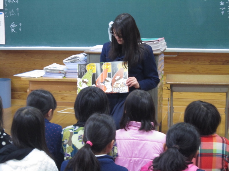 今日は、朝の時間を利用して、今年1回目の「読み聞かせ」がありました。今日は「多良木高校生デー」として、16人の高校生がボランティアに来てくれました。大型絵本の挿絵や高校生が読んでくれるお話に、皆、聞き入っていました。