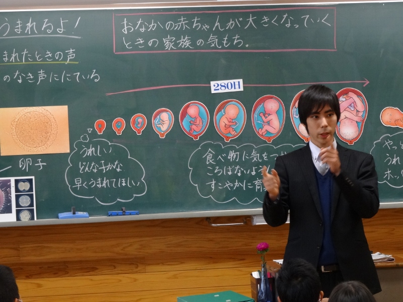 今日は、行こうデーに併せて、各学級で「生命の誕生」についての公開授業を行いました。