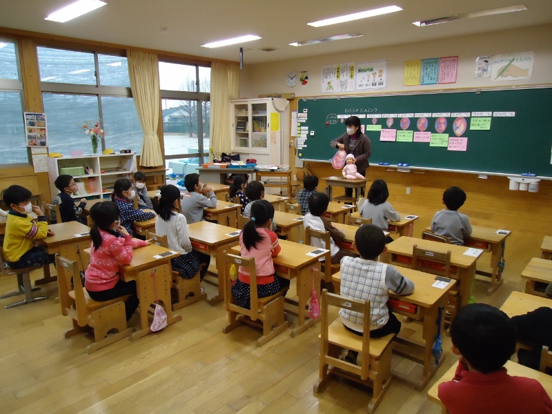 貝飾りなどの実物を見せられ、写真で説明したりされて、とても分かりやすいお話でした。子どもたちは、日本の文化との違いに興味をもってじっくりと話を聞いていました。