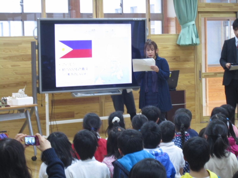 集会の後は、教わったフィリピンの言葉を使ったり、「フィリピンに行ってみたいね。」などと話をして、フィリピンのことをもっと知りたいという思いをもっていた子どもたちでした。