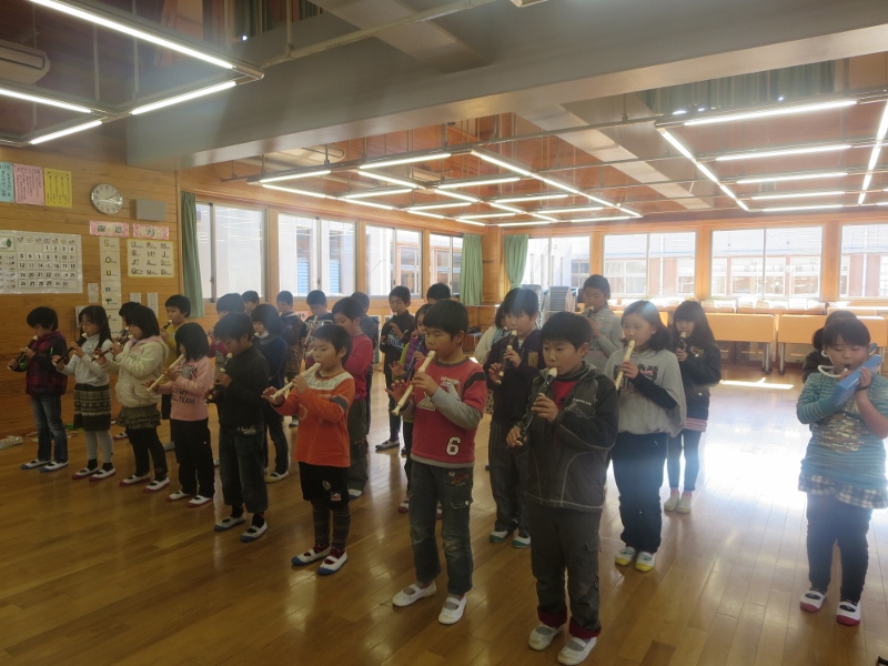 3年生は2月に球磨支援学校との交流学習(2回目)を行います。今回は音楽が大好きな支援学校の友だちのために、くまモン体操やリコーダー演奏を披露します。楽しい交流会になるようにはりきって練習をしています!