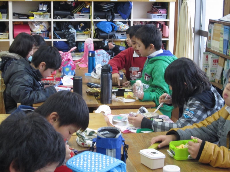 今日は、今年度最後の「弁当デー」でした。朝早くから、家庭で調理した児童も多く、「5時に起きた。」等、会話していました。今年度最後とあって、コースをあげて挑戦した児童も多かったようです。4,5年生の「お弁当の時間」の様子をどうぞ。