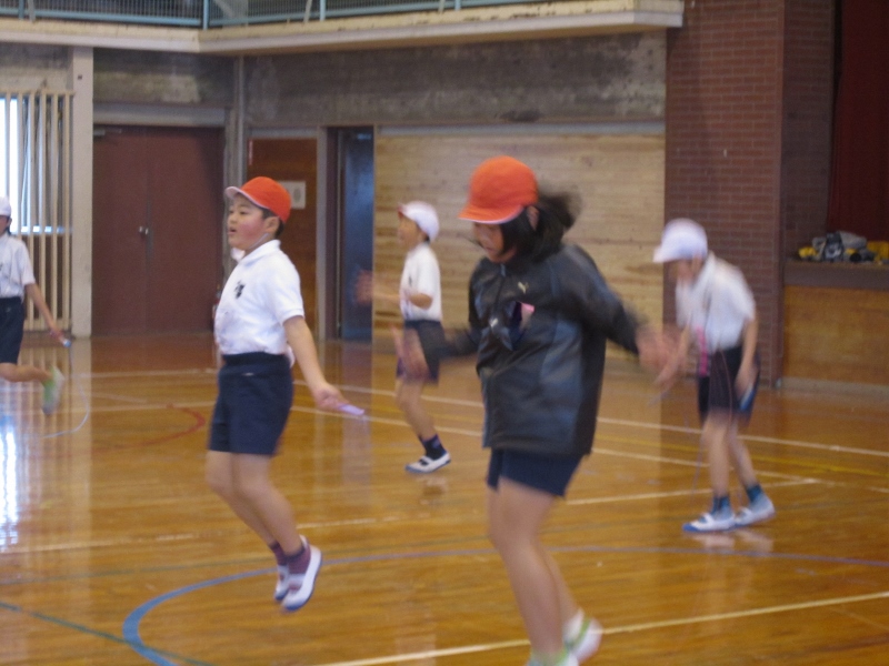 今日は、「行こうデ―」を利用して「なわとび大会」がありました。各学年それぞれ体育館で、これまで練習してきた技を披露したり、持久跳びやはや跳びに挑戦しました。保護者のみなさんの前とあっていつもより頑張ることができた児童も多かったようです。
