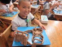 図工の時間に粘土を使って、入口から広がる世界を表現しました。雨が降っていたこともあり、「昼休みもしてもいいですか。」と尋ねてきて、やる気が満ちあふれていました。6時間目の図工の時間は真剣に作っていたため、黙々と自分の世界を表現することに夢中になって手を動かしていました。出来上がった作品は友達と見せ合いながら、様々な「入口」から広がる不思議な世界を鑑賞し合いました。