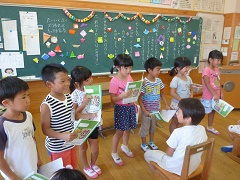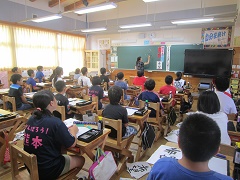 本日、1学期終業式が行われました。1年生にとって、はじめての夏休みが明日から始まります。小学校へ入学して4ヶ月、大きく大きく成長した1年生。1学期のまとめとして、子どもたちが企画したお楽しみ会を行いました。歌あり、クイズあり、ものまねあり、ゲームありと大変盛り上がりました。長い夏休み、充実した毎日が送れるよう、担任一同願っています。